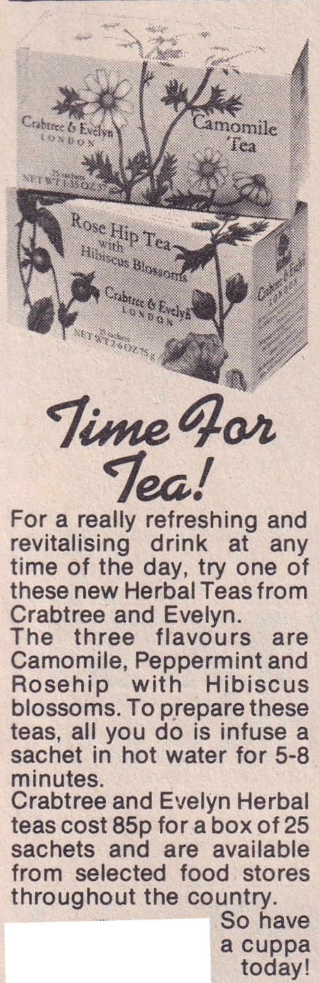 Crabtree and Evelyn Herbal Teas, OK Magazine, 1978