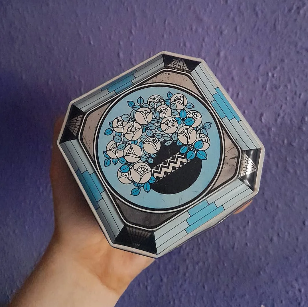 Tins Please click on each photo to learn more Les Michelettes du Mont St. Michel Tin, 50s Art Nouveau style tin, Avon, 80s Roses tin, 20th Century Benson & Hedges Super Virginia Cigarette tin, 20 cigarettes, 70s/80s Blue car shaped carry tin